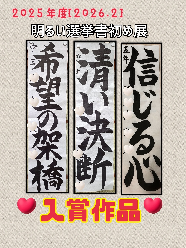 2026年2月市役所掲載作品明るい選挙書初め展入賞作品!